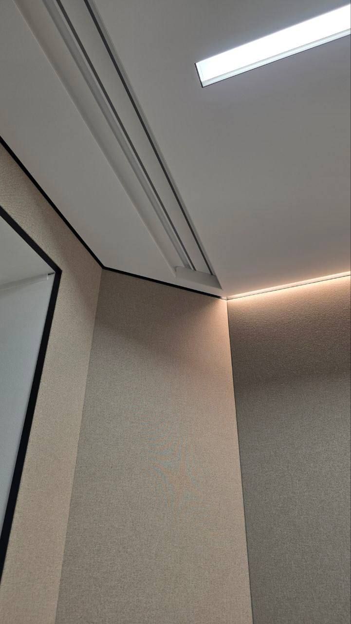 Высокопрочный каркас по периметру. Обеспечивает идеальное натяжение текстиля и позволяет интегрировать скрытый свет, розетки и любые инженерные системы без повреждения полотна.